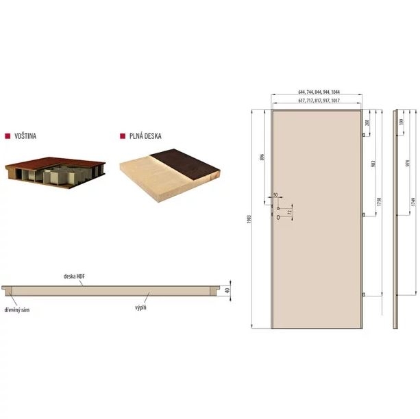- Možnost objednání dveří vyšších o 4,5cm včetně zárubní s příplatkem.