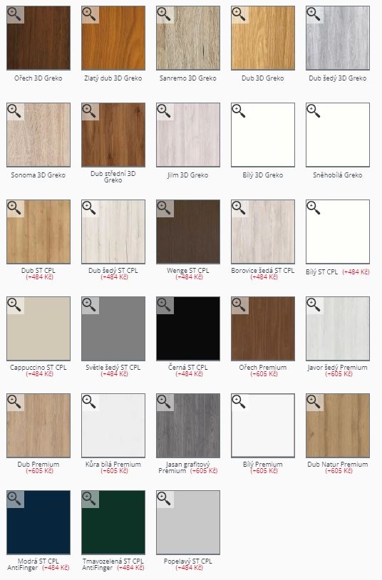 - Povrchová úprava: nejpopulárnější povrch 3D GREKO se zvýrazněnou strukturou dřeva, CPL LAMINÁT se zvýšenou odolností nebo strukturovaný velice odolný povrch PREMIUM.
